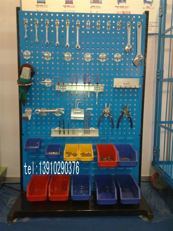 物料整理架是由方孔掛板、百頁掛板、背掛零件盒、棚板、各類掛鉤和底座等組成,廣泛應(yīng)用于車間